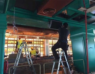 Realizamos un estudio previo del local y adaptamos la instalación a sus necesidades, ya que no es lo mismo instalar un hilo musical que sonorizar una sala para la realización de eventos con música en directo.